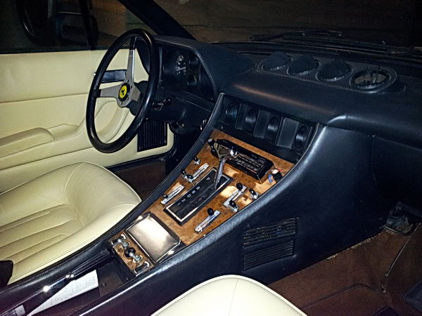 Hier ist es "crema", in Verbindung mit der Außenfarbe "nero" genau das richtige Outfit für diesen "Gentleman" unter den GTs. Und dieses "Wohnzimmer" befand sich in exzellentem Zustand, das Leder kaum patiniert, keinerlei Risse. Lediglich die üblichen Sorgenkinder, die Lederabdeckungen des Armaturenbretts und der Hutablage, sind geschrumpft und bedürfen der Überarbeitung: