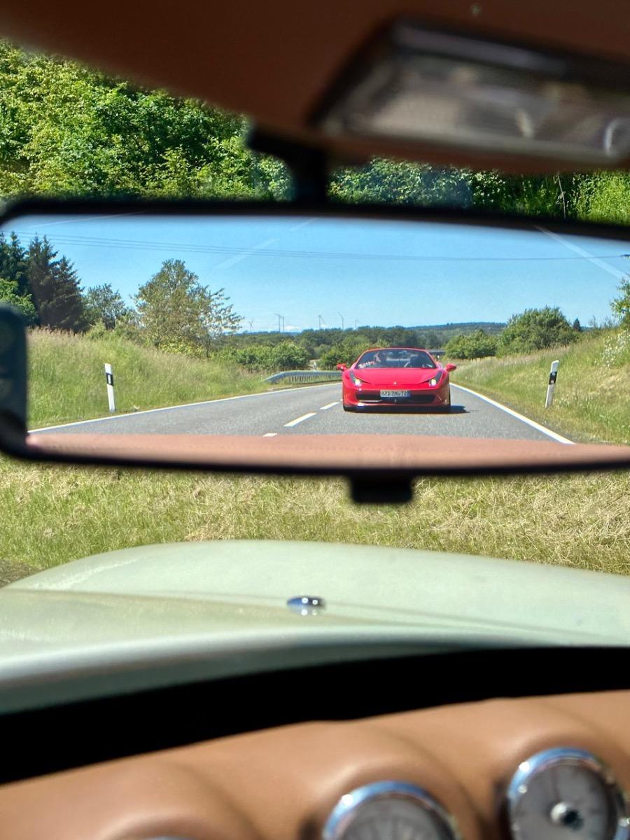 Ist schon witzig @ellbc das gleiche bild im Rückspiegel von diesem Ferrari habe ich auch irgendwo , ist auf der Rückfahrt von Drehzahl und Momente entstanden :-))))