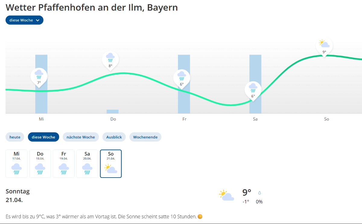 schneidmeister Geschrieben 17. April 2024 Also mein Wetterbericht sagt Schnee.😳 In PAF soll es regnen. Ich glaube, ich nehm lieber Werners Vorhersage.....