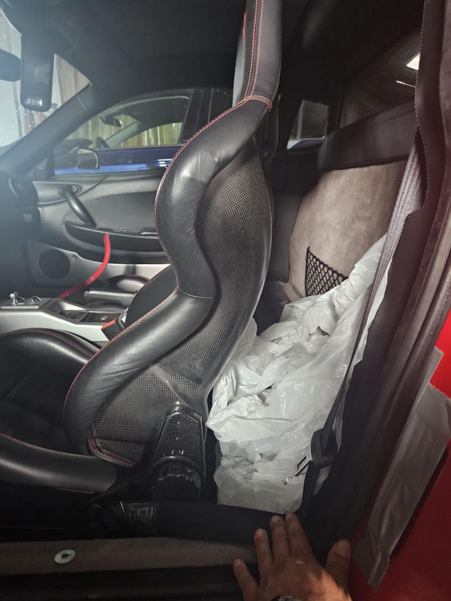 Verkaufe wegen Umbau meine Racing Sitze vom F430 in Carbon, schwarzes Leder mit roten Nähte.