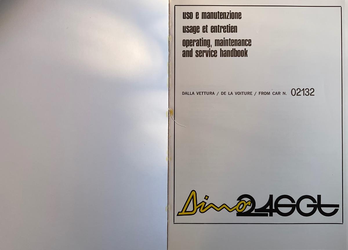 Original Bedienungsanleitung für DINO 246 GT ab VIN 02132, NOS, kein Nachdruck!
