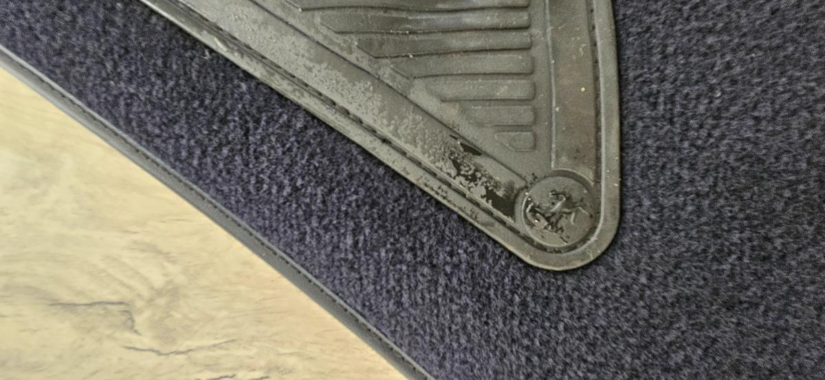 Ferrari Fussmatten, dunkelblau, Original mit Ferrari Logo, passend für F355; Doppelt gekauft für meinen ehemaligen F355 Spider, neu/nie benutzt. Ausführung und Zustand gemäss Fotos.