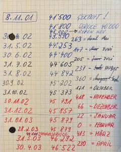 Sowas ist in der Tat selten, aber in Sammlerkreisen nicht einmalig. Da gibt es Freaks, da fällt dir nix mehr ein. Der Eigentümer des besagten 355 hatte im Fahrtenbuch natürlich nicht nur die km-Leistung und Nachtankmenge etc. dokumentiert, sondern auch die ganzen Ziele und Zwischenstopps. Ich musste mir übrigens die Frage verkneifen, dass ich ihn frage ob er denn noch alle Öldosen aufgehoben hat, die er ins Fahrzeug gekippt hat. Ich wollte irgendwie keine Überraschung erleben. Er hatte z.B. bei seinen F40/F50 etc. selbst jeden Transport zu Events etc. komplett mit Fotos dokumentiert wie das Fahrzeug aufgeladen, gesichert etc. wurde. Von den ersten Jahren hat er mittlerweile Fotobücher gemacht. Er erzählte mir von einem Seelenverwandten, der speziell beim F40 sogar den Wetterbericht zu jeder Fahrt aufgehoben hat. Früher wohl noch aus der Zeitung ausgeschnitten, bevor es die Daten online gibt. @MaxF und da frägst Du was eine Dokumentation von km-Stand und Betankung bewirken soll? Er hätte vermutlich keine Antwort dafür, wobei die km/Betankungs-Dokumentation aber schon sehr weit verbereitet ist - aber bei den meisten km-Stand bei der Betankung und Datum.