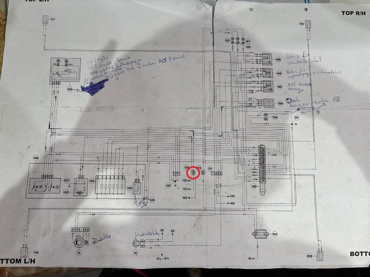 ...und auch alle Steckverbindungen, ob nicht ein einzelnes abgebrochenes Drähtchen den Nachbarkontakt berührt usw. @Enrico13 gibt es inzwischen neue Erkenntnisse? Wenn nicht, dann würde ich zuerst die Steckverbindung 106 trennen. Davon gehen 5 pinkfarbene Leitungen ab. Dann weißt Du schonmal, in welcher Richtung Du weitersuchen musst. Gruß, Georg -