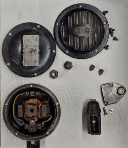 Da könnte etwas dran sein. Gestern Kleinkram. Kleinvieh macht auch Mist, meint braucht Zeit. Hupe und Bremslichtschalter durchgemessen, beide waren hochohmig. Also stand zerlegen, reinigen und instandsetzen an. Der Bremslichtschalter war vernietet, also aufgebohrt und M4 Gewinde für Schrauben anstatt Nieten geschnitten. Gewindeschneiden in Bakelit ist diffizil. Die Kiste ist übrigens total wertvoll, sie hat nämlich "matching numbers". Wir alle wissen, dass Fahrzeuge ohne selbige völlig wertlos sind. -