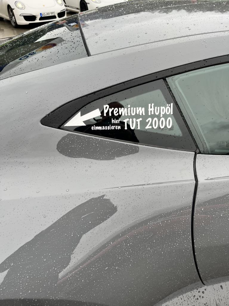 Haben wir denn schon über Hup-Öl gesprochen? Die Geschichte dahinter: In Vorbereitung der ersten After-WWF-Tour haben wir über Funkgeräte "gesprochen", besser gesagt uns hier im Forum darüber ausgetauscht. Es fing dann damit an, dass wir im Spaß meinten, auf die Funkgeräte verzichten zu können und uns stattdessen durch Hupsignale zu verständigen (1 x hupen = links ab, 2 x hupen = rechts ab, 3 x hupen = stopp etc.). Neben der Tatsache, dass wir dann erst noch das Hup-Alphabet hätten lernen müssen (1 x hupen = usw.), waren wir dann der Meinung, dass die Hupen irgendwann den Geist aufgeben. Was dann zu der Lösung führte, man müsse die Hupen nur genug ölen, dann ginge das schon. Und schon war das Hupöl geboren. @AC/DC_Gallardo hat dann noch einen drauf gesetzt und sein Auto entsprechend foliert, @Eno hat dann tatsächlich reales Hupöl in Form von Schnaps aus Dresden mitgebracht, mit dem wir abends unsere Hupen (vulgo Stimmbänder) ölten. Doch! Wir müssen uns nur am Riemen reißen. Am Zahnriemen! @plaelo: Wo bist du hier nur hin geraten? -