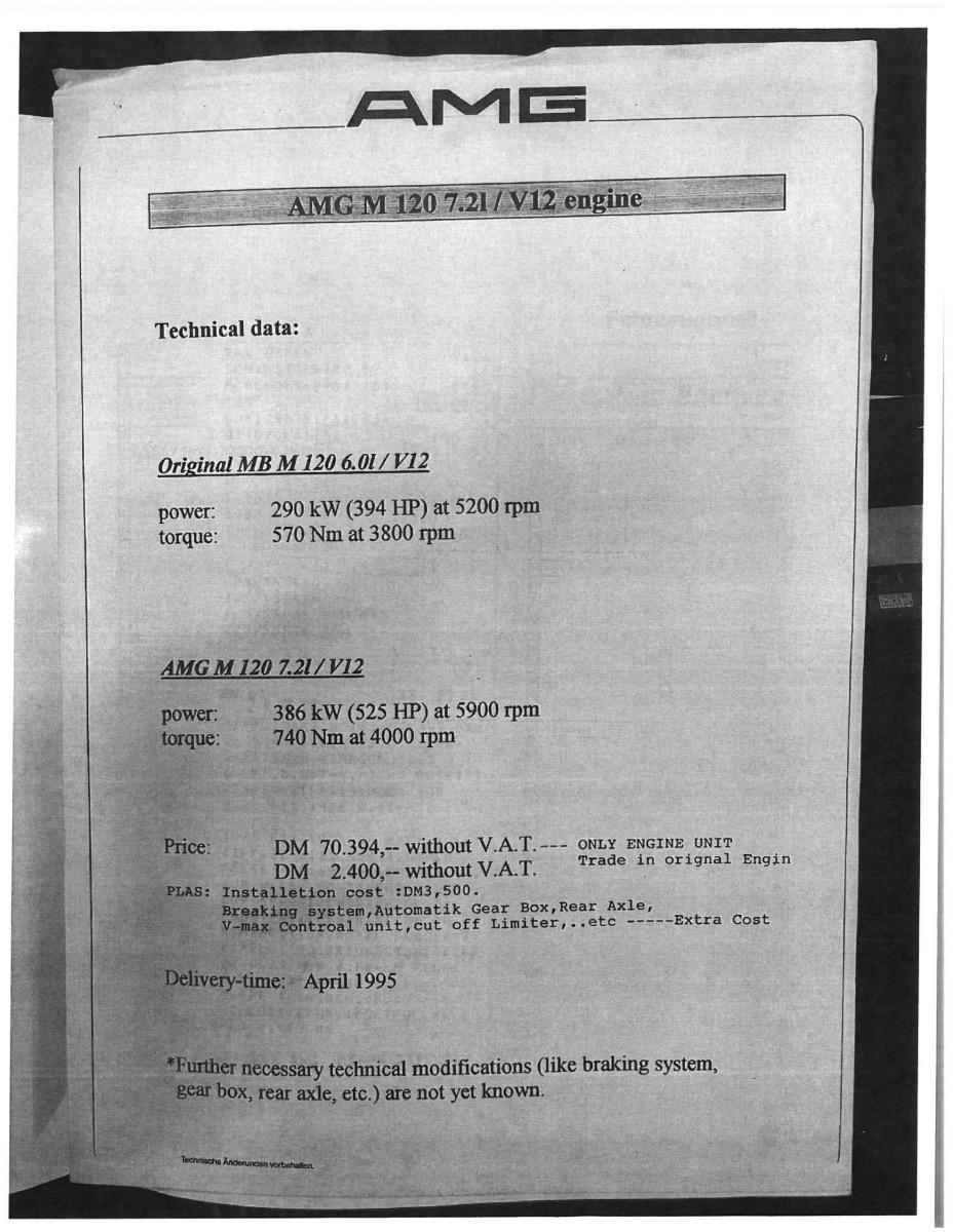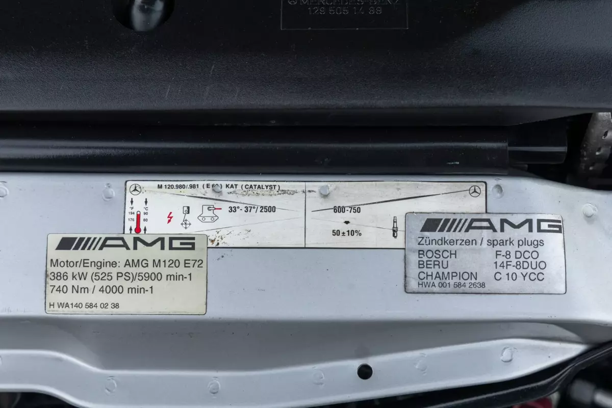 Der SL72 ist gar kein 7,2 Liter, sondern auch ein 7,3 Liter. Sowohl SL72 und SL73 haben beide 7291ccm und leisten beide 525 PS. Als der SL72 damals angekündigt wurde, war in frühen Unterlagen von einem Motor mit einer Bohrung und einem Hub von 91,0 x 90,4 die Rede. Dies hätte einen Hubraum von insgesamt 7.055 ccm ergeben. Die Bezeichnung für den Motor lautete „E72“, woraus sich der Name SL72 ableitete. 25 Stück gingen damals angeblich nach Brunei, 10 Fahrzeuge kamen auf den freien Markt. War ein teurer Spaß... -