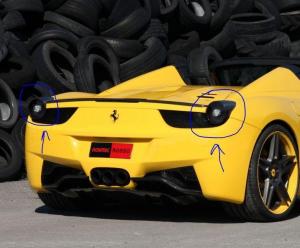 Schwarze Rückleuchten und Einsätze für Luftauslässe beim Ferrari 458