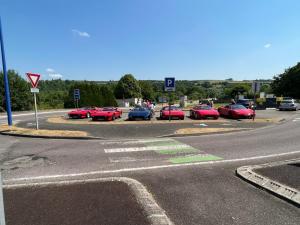 Gestern fand die von Mertel Italocars organisierte, markenoffene Erlebnistour statt. Los ging es bei Mertel mit einem WEISSWURSTFRÜHSTÜCK ala Werner. Es kamen geschätzt 100 Teilnehmer mit ca 60 Fahrzeugen. Neben vielen Ferraris nahmen auch Fahrzeuge von Lamborghini, Maserati, Porsche, Mercedes, Audi, BMW und sogar eine Corvette teil. Es ging über Lauf, Hersbruck und Alfeld dann nach Süden nach Velbert, Thalmässing und über das Seenlandschaft bis hinter Treuchtlingen. Meine Befürchtungen, dass es eine „Schleichfahrt“ werden würde haben sich nicht bestätigt, es ging durchaus zügig voran. Mittagessen dann gegen 14:00 im Eventpark Stadelmann mit reichhaltigem Büfett, exzellenter, knuspriger Ente mit Kloß und Blaukraut, oder Niedrigtemperatur gegarter Rinderlende. Retrospektiv ein sehr gelungener Event. Folgend ein paar Impressionen: