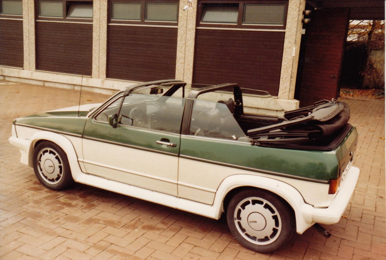 Als ich den Golf neu kaufte, war er met. grün lackiert. Dann habe ich ihn mit dem Body Kit von Kamei bestückt und teilweise in perlmut lackieren lassen. So ist er dann auch zu Arzt gegangen und wurde zum Speedster umgebaut.