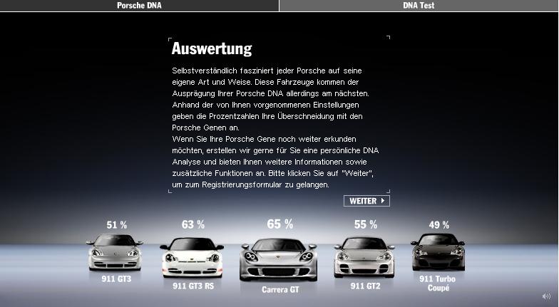 auf porsche.de wird ein test angeboten, bei dem man seine bedürfnisse abfragen kann und der PC daraus den "perfekten" (aktuellen) porsche findet !