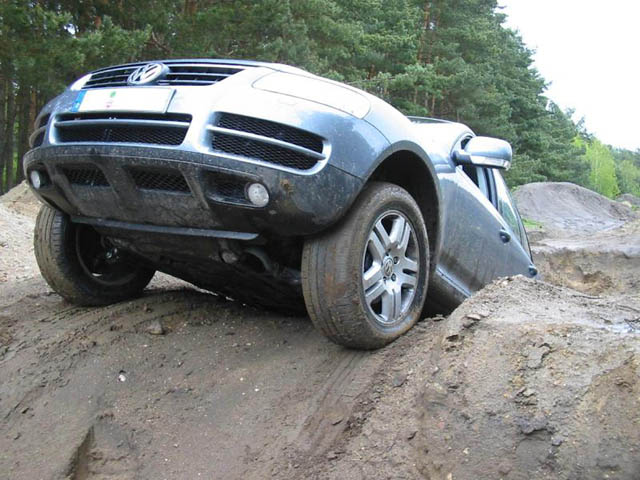 Ich würde mir den Touareg R5 zulegen, wenn ich nicht schon meinen VW Iltis hätte. Der R5 hat für mich das beste Preis/Leistungsverhältnis. Mit dem V10 bin ich auch mal gefahren, Dampf in allen Lebenslagen. Nur (für mich) zu teuer. Wenn man allerdings aufs Geld nicht gucken muss sicher auch eine Überlegung wert. Wenn man öfter ins Gelände fahren will, sollte man die Luftfederung unbedingt mitbestellen, wenn es nicht der V10 sein soll (Serie), sonst siehe Bild :oops: . Das reine "Stahlfahrwerk" ist gut 10 cm niedriger. Das Bild ist von einer privaten Vergleichsfahrt VW Iltis gegen Touareg V6 im Gelände (ehem. Fahrschulgelände der NVA in Peckfitz, sehr zu empfehlen). Das war das einzige Mal, wo der Touareg aufgesetzt hat, so schlecht kann er also nicht sein. :wink: Nur irgendwie zu schade zum "richtigen" Geländefahren...