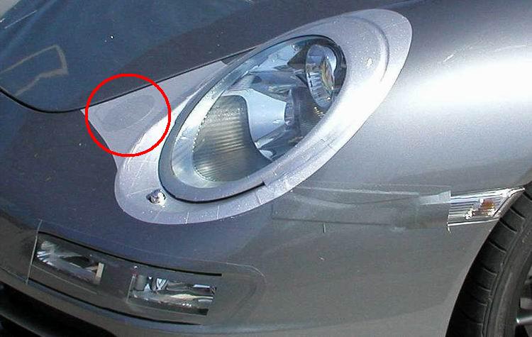 bei dem "etwas" tipp ich mal auf tarnung. entweder soll das den kleinen scheinwerfer darstellen(das wär allerdings mies :wink: ), oder aber den Deckel der Scheinwerferwaschanlage des 996ers. Was anderes kann ich mir nicht vorstellen ...sieht mmn auf jeden fall wie ein aufkleber aus.