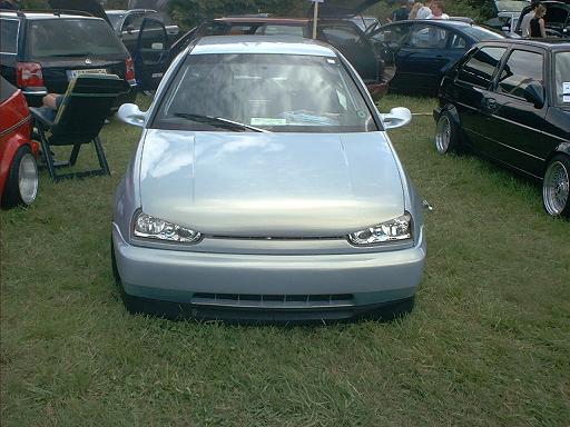 Der böse Blick beim untigen ist von der Form her schön, aber leider zu tief gezogen, beim obigen Bild wirken die Blenden über den Golf-IV-Look-Scheinwerfern billig. Mein Meinung: Entweder in die Motorhaube integrieren (was hier sehr schwierig wird) oder weg lassen.