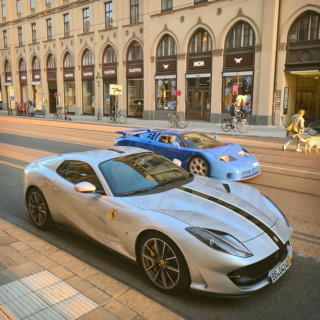 Also der silberne GTS gefällt mir in dieser Farbe inkl. dem neuen Felgedesign ausgesprochen gut. Auch der Streifen passt gut dazu. Würde den dem Bugatti in jedem Fall vorziehen. Auch deshalb, weil der EB110 bei dem damaligen Eigentümer bestimmt noch nicht den Qualitätsstandard hatte, wie heute. Und Cabrio ist es auch nicht.