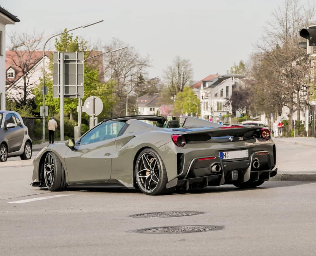 Ist das ein Dienstwagen von der Bundeswehr?  Sonderfarbe „AKK Schlamm“ Aufpreis 18.000 EUR 😀 Oder wollte der vor der Corona-Werksschliessung noch schnell seinen Pista Spider haben und fährt deshalb nur mit der Grundierung rum?