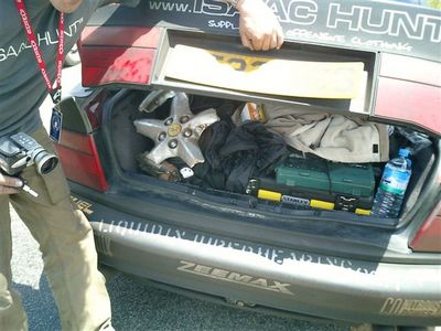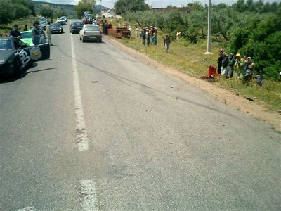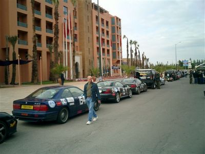 It was the Looney Cosworth that crashed in Marrakech this morning. Team 132 was in front after leaving Marrakech at 8 pm local time today (08.06.2004). There were one or two cars between Team 132 and the Looney Cosworth when it left the road and disappeared in clouds of dust. Parts were shattered over a large area. Team 132 was the first persons to arrive and help them. Fortunately the car was built as a rally car and both persons are ok, circumstances considered. The co-pilot felt unwell and bleed from his nose, so he was taken to a hospital nearby. The car will most likely be shipped back too England
