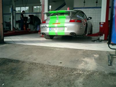 A Porsche GT3 blew his engine, and hit the rails. No further info