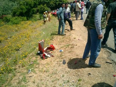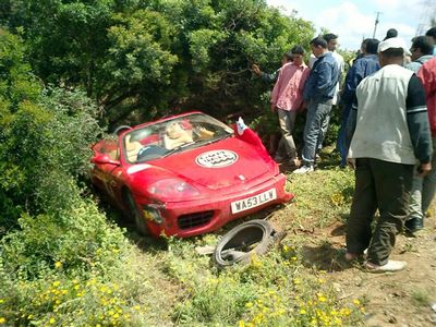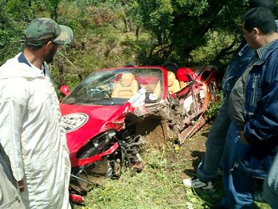 A red Ferrari has crashed in Morocco. It it ran into a tractor from behind and both vehicles went off the road. The Ferrari is wrecked, but both driver and co-pilot is unharmed.