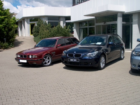 Ja, ein wirklich sehr schönes und gelungenes Auto! Nur leider verdammt groß geraten! Kann mich noch an einen Spruch vom Entwicklungschef aus der Autozeitung erinnern... Zitat: "Unser neuer Fünfer Touring soll elegant und schmal geschnitten sein..."! Doch wenn wir mal ehrlich sind... er hat die identischen Ausmaße wie der Klotz von E-Klasse Kombi... ;-).