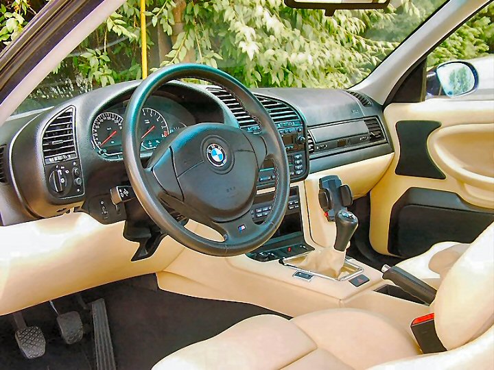 tolle vorstellung ein M3, schönes leder und plastikbezüge (könnte ich mir aber in amerika vorstellen) :puke: