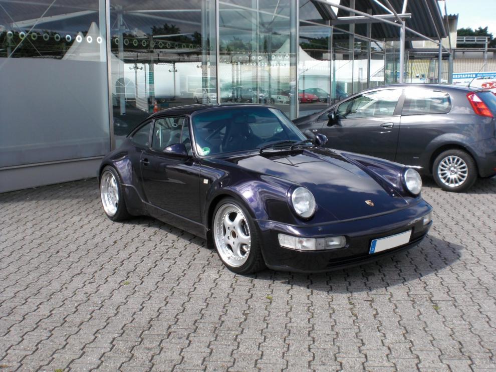 Nichtsahnend fuhr ich nach dem Vortrag einer Facharbeit wieder zurück zur Schule und dann plötzlich passiert es. Durch eine kleine Lücke zwischen 2 Bäumen sieht ein Kumpel etwas auf ca. 200m Entfernung es ist ROT und hat einen "zierlichen" Flügel auf dem Heck. Natürlich ein Porsche was sonst ;)