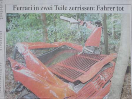 also bei uns in der Tageszeitung stand auch ein kurzer Bericht drin. Aber da stand nicht mal mit drin das es ein Ferrari war. Sondern nur allgemein das ein Tödlicher Unfall passierte.