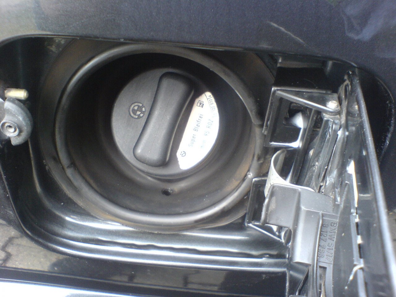 Noch ein Detailbild der Tankklappe (das rötlichgelbe ist irgendein Konservierungsmittel/Gummipflege des Vorbesitzers dass man nur mit Nachdruck wegbekommt)