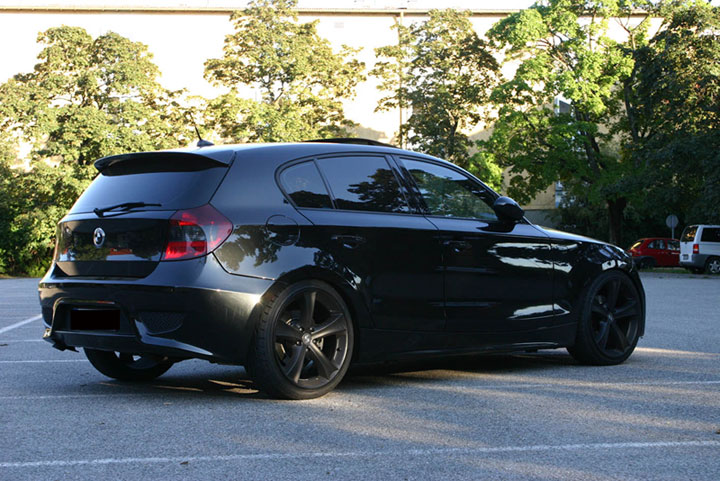 Das ist der Einser von meinem Bruder!! Hat jetzt neue Felgen drauf! Tettsut Black in 8j 19. + Tieferlegung VA 50 und HA 25