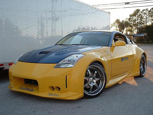 Veilside stellt ein extrem gewaltiges Breitbau-kit für den Nissan 350Z her, sieht hammer aus. Was das Thema Leistung angeht stellt G-Reddy ein sehr gutes Bi-Turbo kit her, allerdings würde ich dir eher zu reinem Motortuning raten, also nix mit Kompressor oder Turbo/Bi-Turbo, da der Wagen bzw der Motor nicht darauf ausgelegt ist. G-Reddy stellt zudem auch sehr lautstarke Auspuffanlagen her und im Bereich Felgen kann ich dir nur wie jedem anderen auch Volk Racing ans Herz legen, super geile Felgen. Hier noch mal das Breitbau-kit von Veilside für dich, da du ja unbedingt Fotos haben willst und das G-Reddy Bi-Turbo kit stelle ich noch dazu :-))!