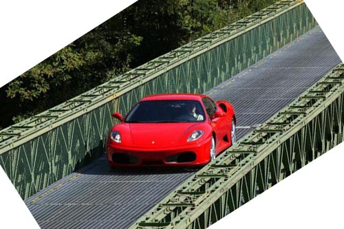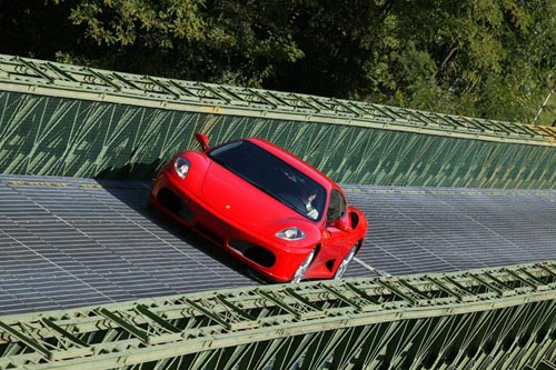 Ferrari wurde aus einem Blickwinkel fotografiert, sodass das Brückengeländer