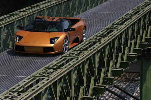Das Brückengeländer lässt beim Lambo den Hinterfrund durch. Beim