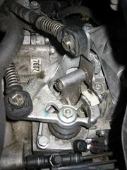 So ich habe mal ein pic von meiner Originalklaue gemacht. Ansonsten hast Du das soweit richtig verstanden. Am anderen Ende der Scheibe (bzw. wie ich bei mir jetzt genau gesehen habe fast in der Mitte) geht dann ein Arm nach unten der den eigentlichen Schaltmechanismus im Getriebe bedient. Links davon sitzt bei mir die Aufnahme des Schaltzuggestänges. Rückt dieses nun weiter nach innen (also in Richtung des Armes), dann wird der Schaltweg verkürzt.