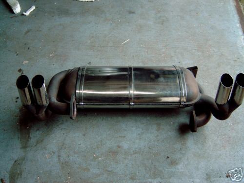 Es ist ein Serienauspuff, für die USA. Diese Anlage war mit einem zusätzlichen Edelstahlmantel versehen. Zum einen damit die Anlage schön aussieht und zum andern damit die blö... Amis nicht auf den heissen Auspuff fassen. Unter dem Stahlmantel war ein zusätzlicher Hitzeschutz.