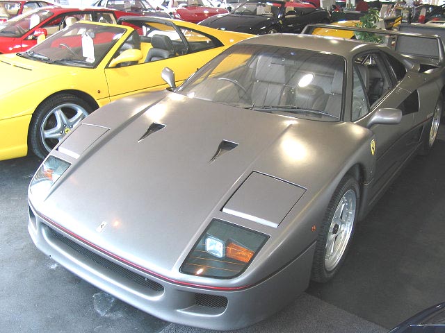 Den F40 und da streiten sich die Gelehrten, manche sagen ausnahmslos nur in rot. Andere Quellen sprechen von sieben, in gelb lackierten Fahrzeugen, wobei sicher ist, daß Nicki Laudas F40 in gelb vom Band lief. Desweiteren seien zwei schwarze F40 ausgeliefert worden, von denen einer an Lothar Matthäus ging!? Einen schwarzen F40 hatte ich mal vorm Dorint Hotel am Nürburgring stehen sehn der dann wieder bei Auto Becker auftauchte wo er zum Verkauf stand. Den Bugatti-blauen, den zweifarbigen (in der typischen 512 BB-Lackierung) oben rot und ab der Sicke nach unten schwarz-matt, sowie der weiße wurden umlackiert. Nur von dem anthrazit farbenen F40 habe ich noch nichts in Erfahrung bringen können, scheint aber so als könnte er aus dem königlichen Fuhrpark, des Sultan von Brunei stammen, der auch die limitierten Sondermodelle wie F40 und F50 alle bei Pininfarina auf Rechtslenkung umbauen ließ, aber wer montierte die Testarossa Sitze im Innenraum??? Wer weiß mehr darüber?