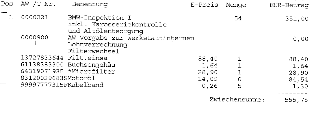 Ich wäre froh über so eine Rechnung, wie deine. Meine letzte große Inspektion kostete ca. 1500 € (gut, 4 neue Bremsscheiben), ansonsten wären es ca. 850 gewesen.