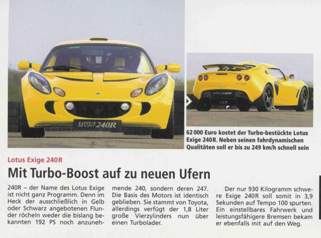 Die gelbe Exige ist die 240R.