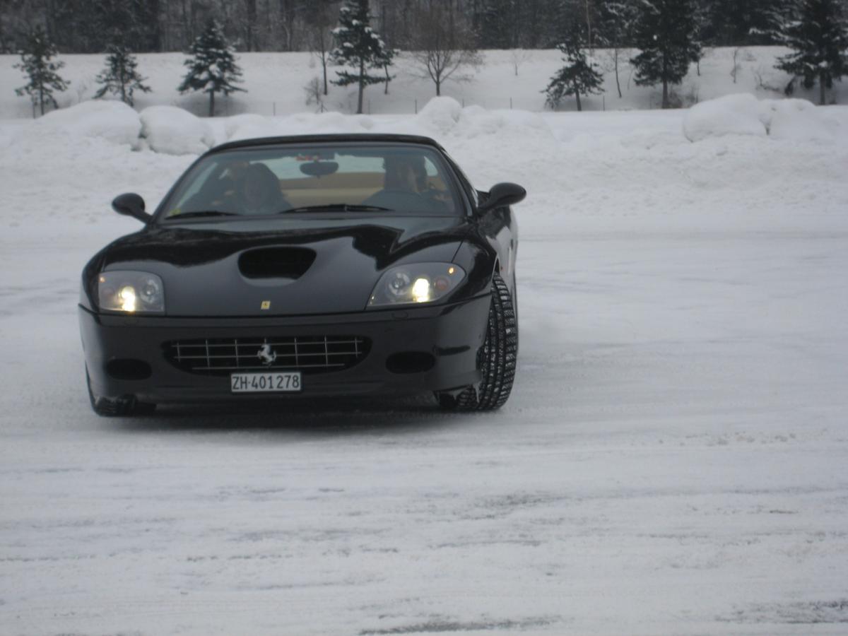 Ich halte es einfach nicht aus im Winter und kann nicht monatelang ohne Ferrari sein... Da muss er zwischendrin einfach mal wieder raus. Im grossen Schnee fahre ich nicht (mehr), aber zwischendurch gibt es nichts schöneres. Manchmal gehe ich mit dem 575M nach Ambri in ein Winterfahrtraining. Das macht jeweils viel Spass.