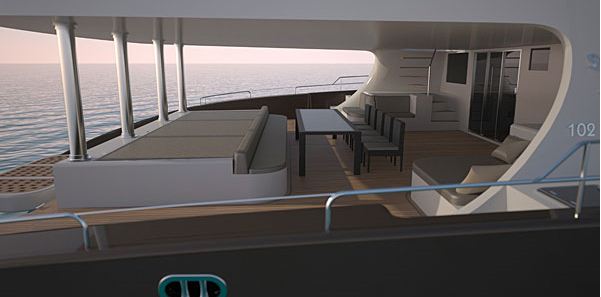 ("The most stunning feature on this yacht is a special handcrafted supercar (Tender) powered by a 880hp twin turbo V12 engine with topspeed 375kmh can be housed in as a tender in the stern garage." Von http://graydesign.se/index.php?option=com_content&view=article&id=153&Itemid=157)