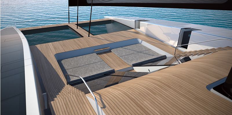 Das was sich bei der "A" im Heck befindet hat mittlerweile so ziemlich jede Yacht, die Luna kann den "Hafen" z.B. an der Seite ausfahren!