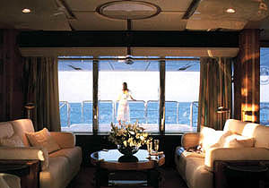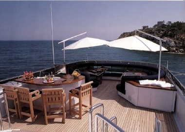 Features Interior living space 300 sq m (3000 sq ft). Owner occupies whole deck. Private owners deck and bar area. Enclosed flybridge. Aft elevator platform for tender storage and launch, swim platform or al fresco dinning. Jacuzzi and sun beds. Entertainment systems and plasma screens in saloon and all guest accommodation. State of the art ship management systems. Luxurious interiors and finishing throughout. Natural light in all living areas.