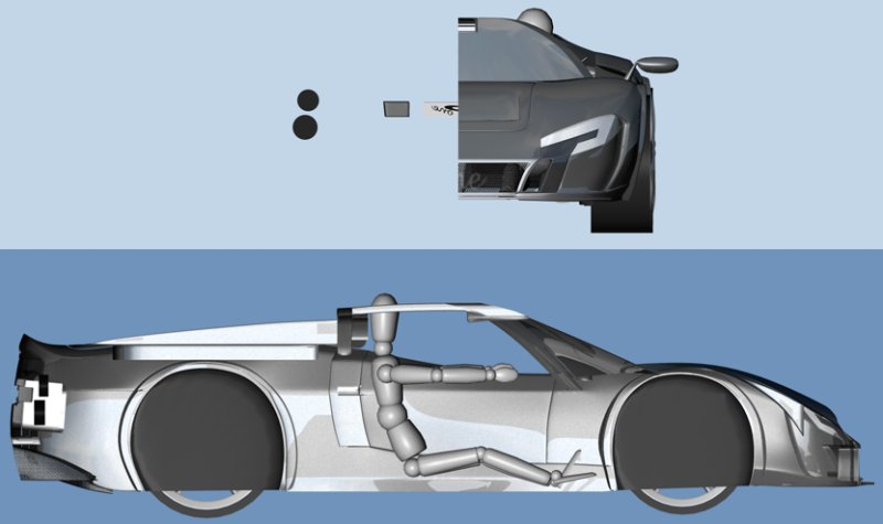 Wenn ich aber noch zwei Kritikpunkte anführen dürfte, und zwar würde ich die A-Säule etwas vergrößern oder die Seitenscheiben irgendwie kleiner machen und der Übergang von der Motorhaube zur Frontscheibe "fließender" gestalten.