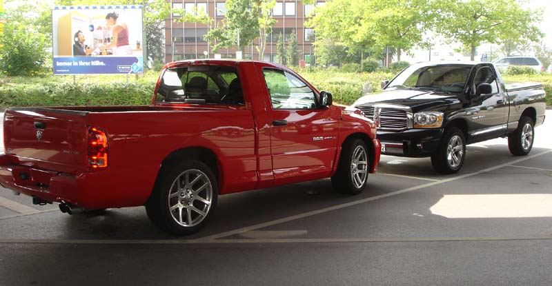 Aber ich war blind, denn erst im Gespräch mit der Fangemeinde habe ich bemerkt, daß ein weiteres Familienmitglied (zwar "nur" ein normaler Ram1500) direkt gegenüber geparkt hatte!