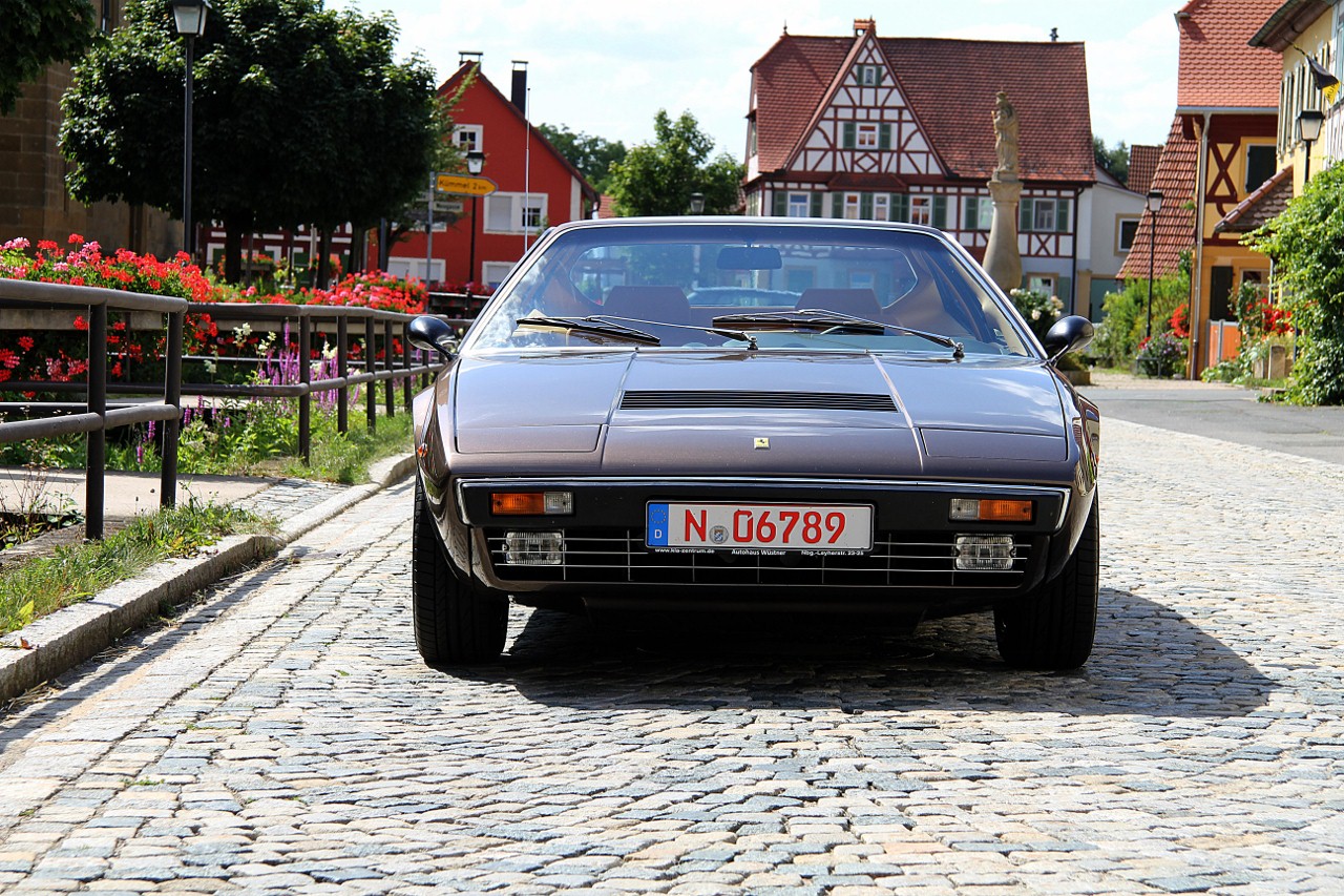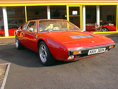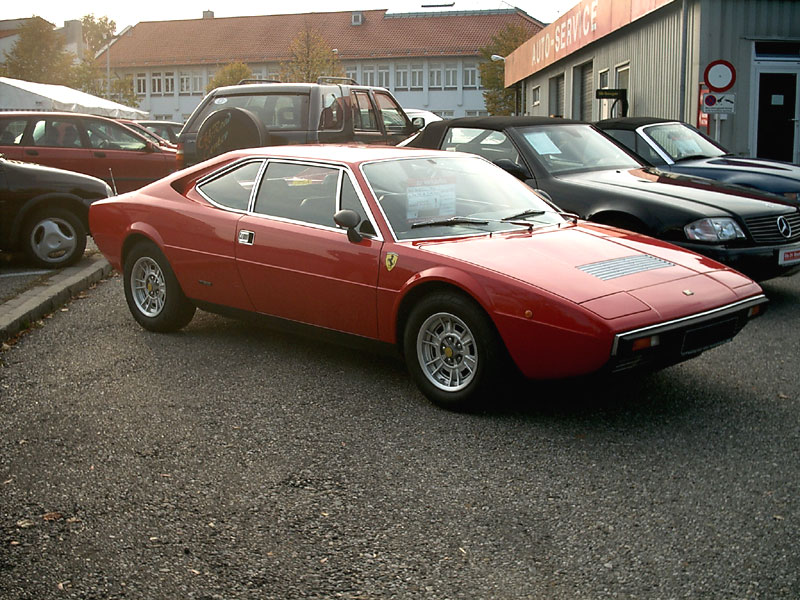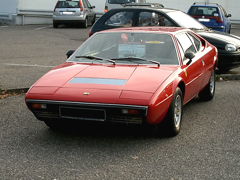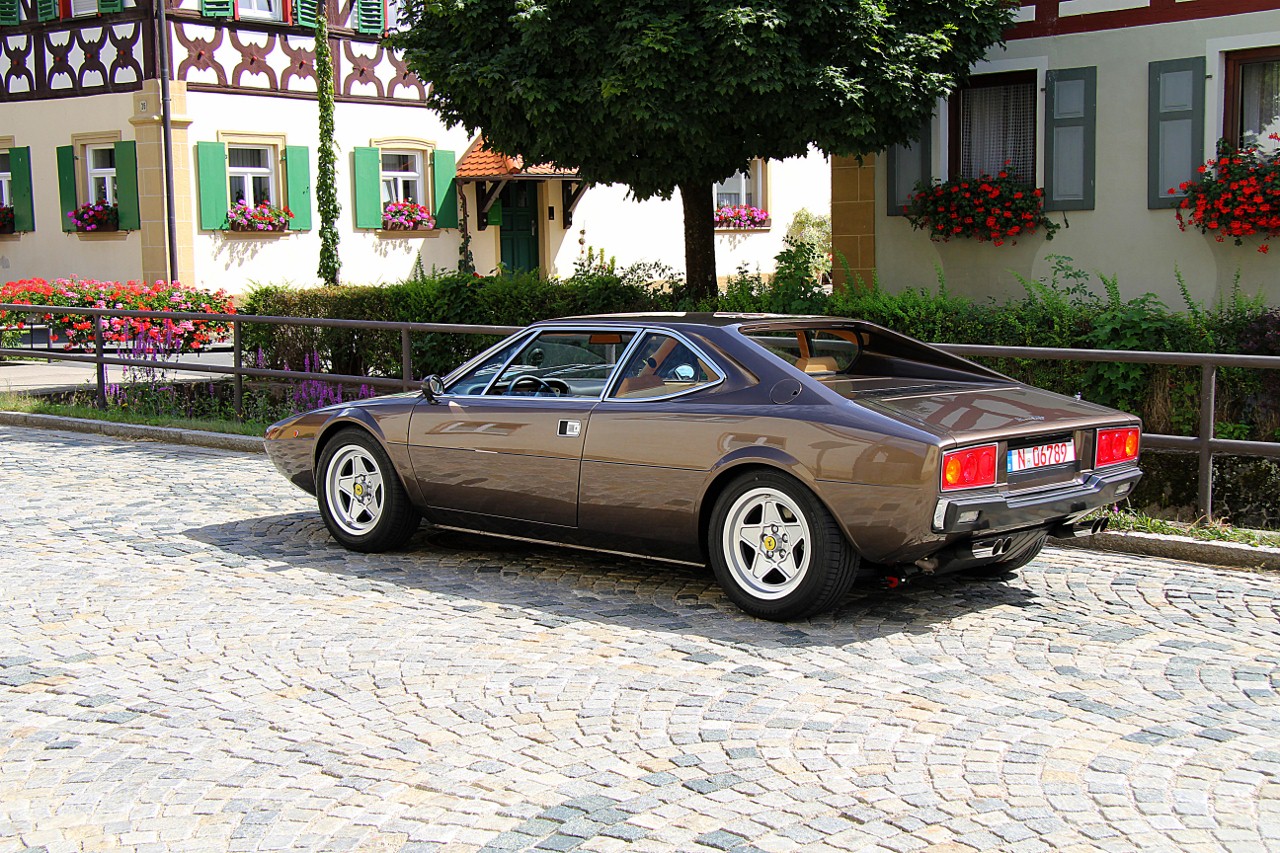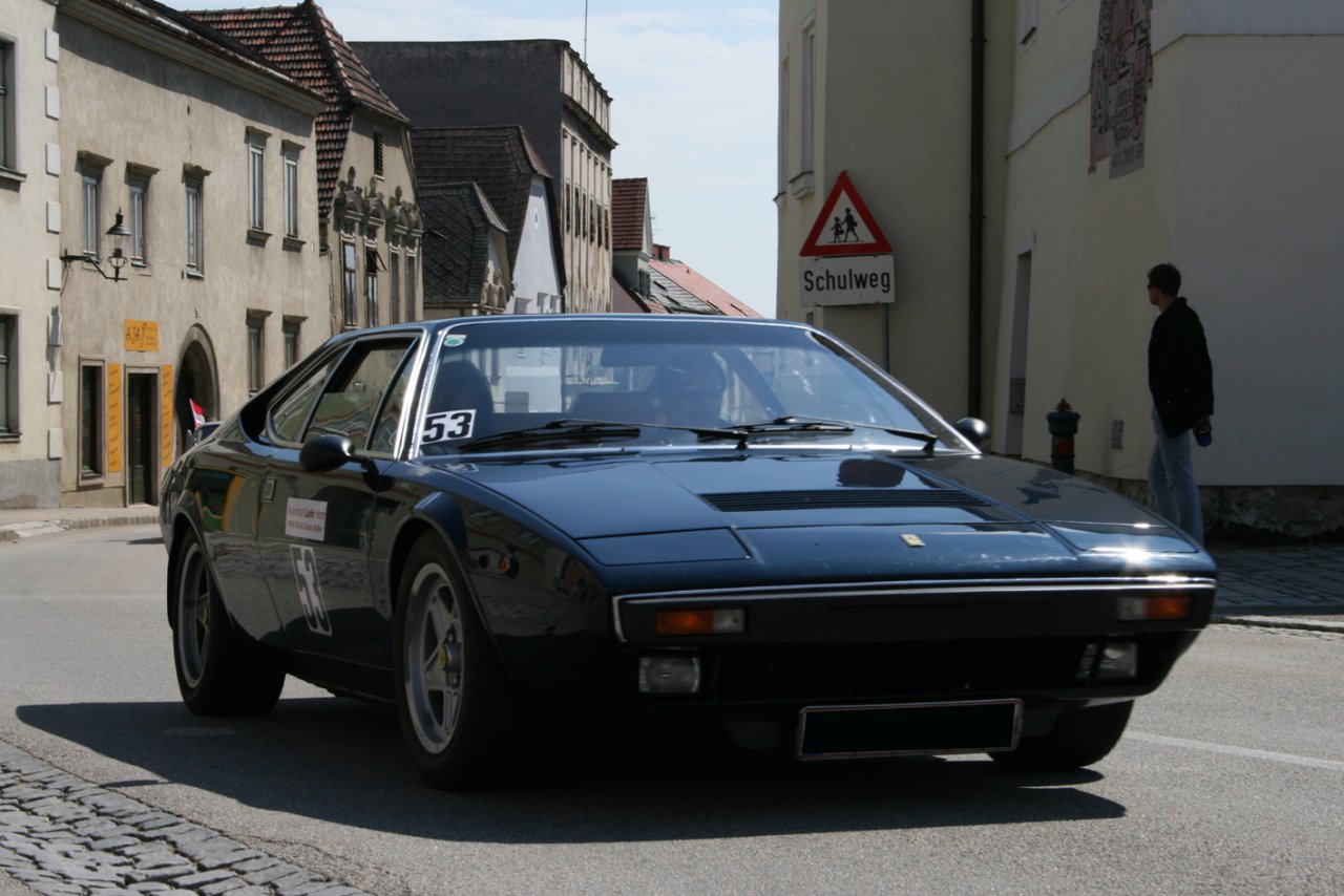 The car debuted at the Paris auto show in 1973 and began production in 1974. It was badged as a Dino, a status unchanged until floundering sales led Maranello to replace the Dino labels with the prancing horse. Traditional star-patterned five spoke wheels replaced the Dino wheels and boxer trim was added to many of the cars residing on dealers lots. The car got great reviews on its driving but there were many who disliked the angular styling especially in the long shadow of the popular 246.