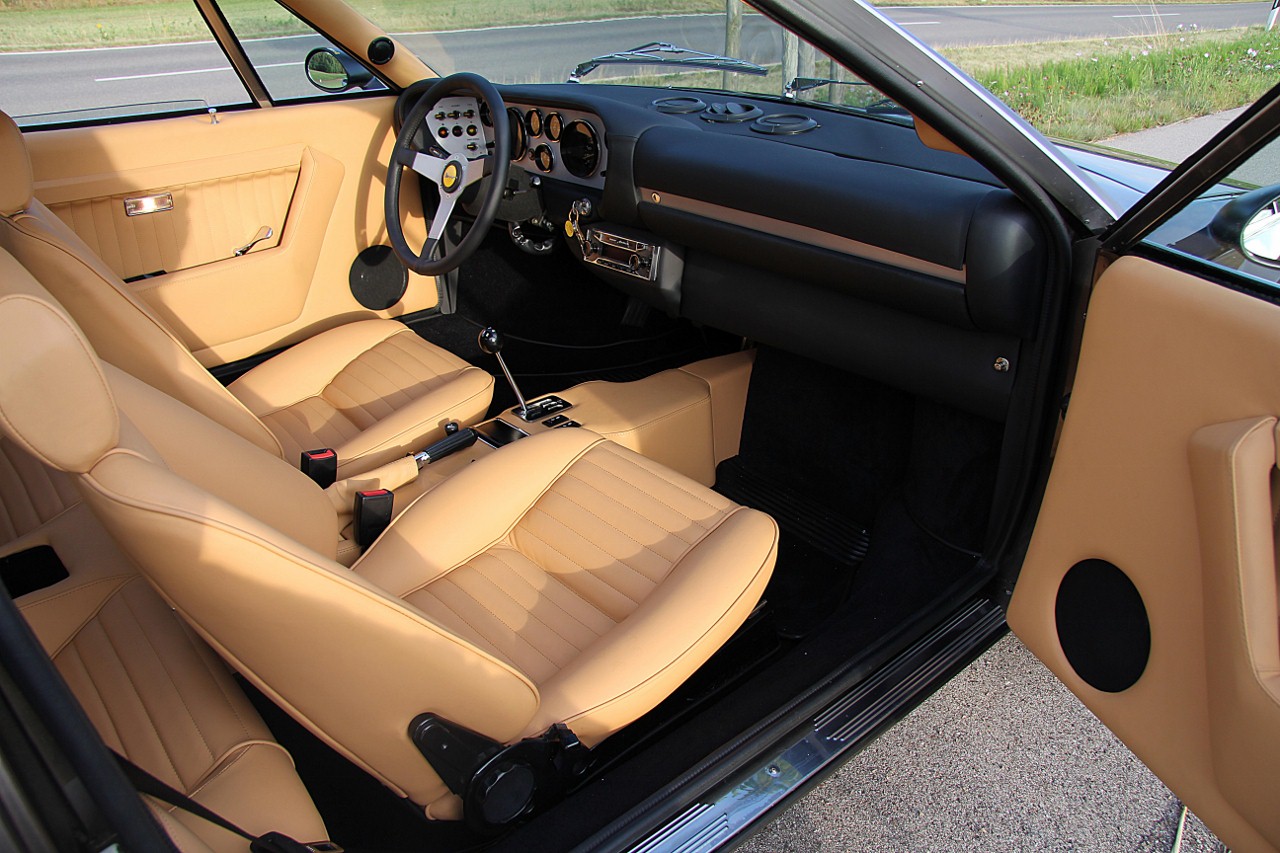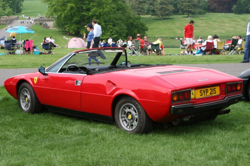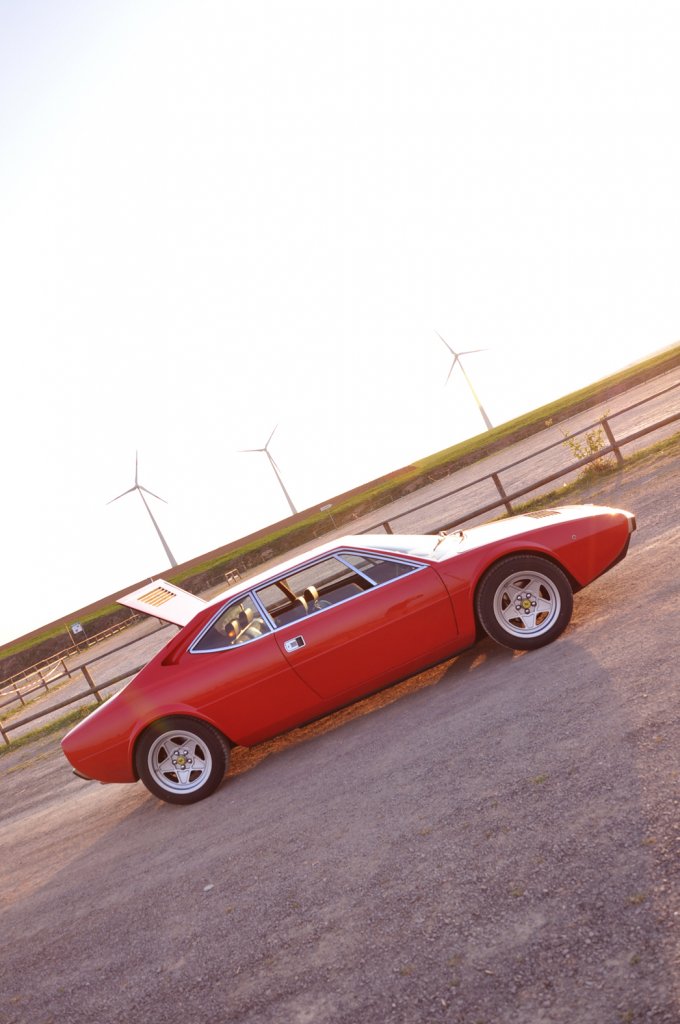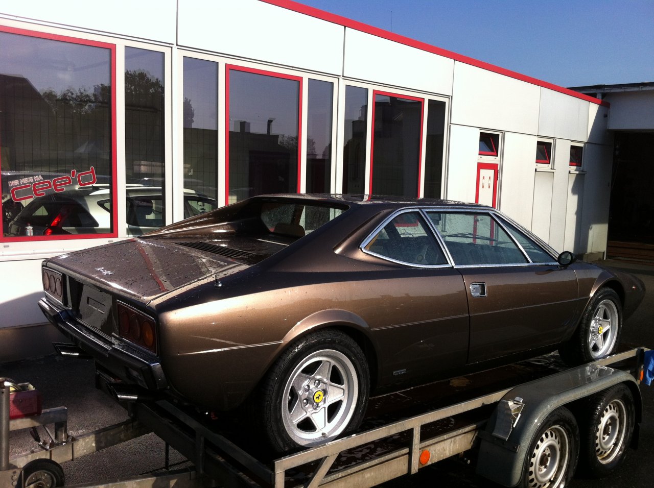 The car debuted at the Paris auto show in 1973 and began production in 1974. It was badged as a Dino, a status unchanged until floundering sales led Maranello to replace the Dino labels with the prancing horse. Traditional star-patterned five spoke wheels replaced the Dino wheels and boxer trim was added to many of the cars residing on dealers lots. The car got great reviews on its driving but there were many who disliked the angular styling especially in the long shadow of the popular 246.