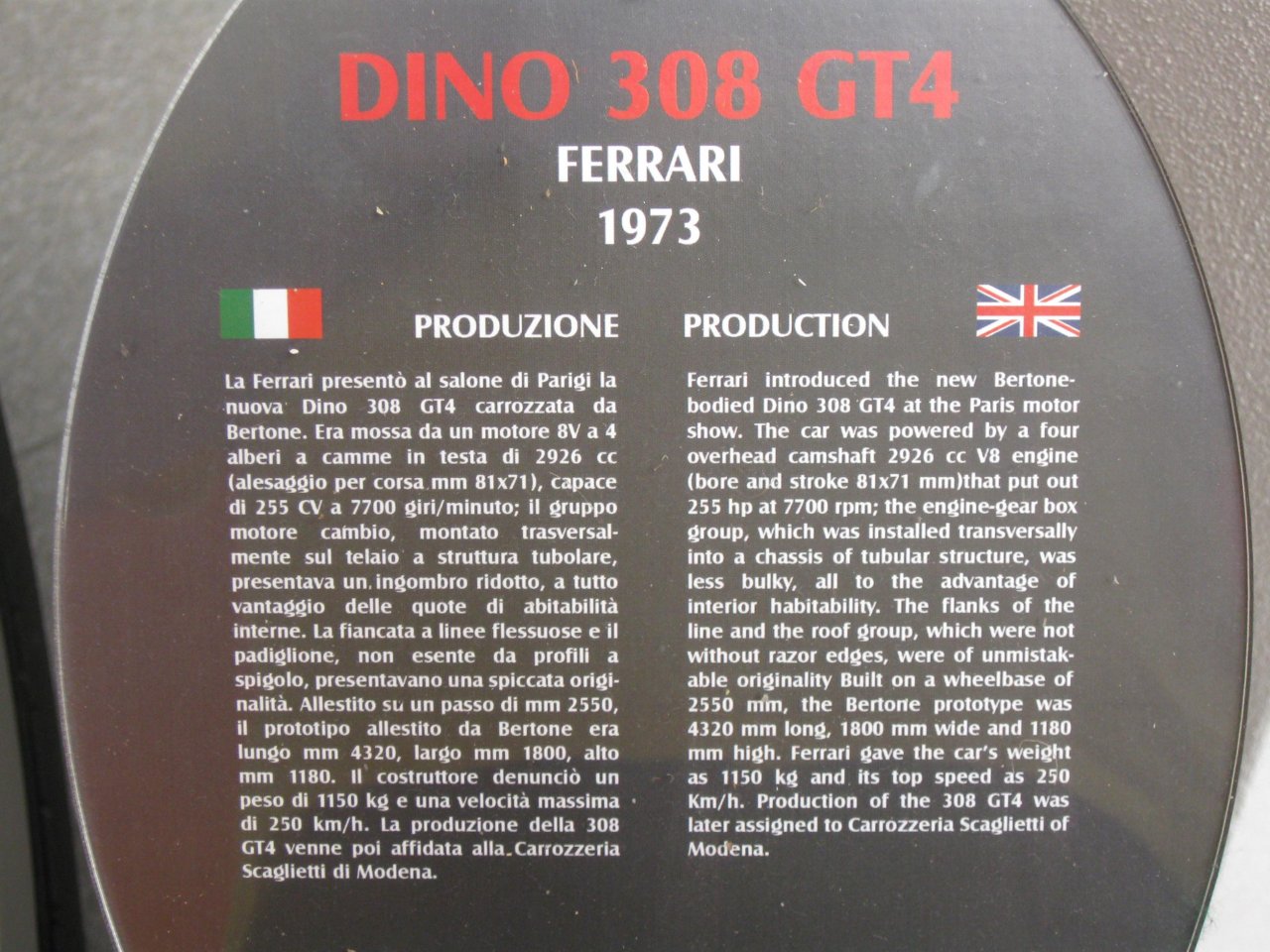 The 308 GT4 came at a time that Ferrari was reinventing itself. It was still adjusting to the marriage with Fiat that had shifted the production of road cars so as to leave Enzo Ferrari more time and resources to devote to his passion for racing. The first child of this marriage had been the Dino 206 and later the 246 which could supply production based numbers for a competitive Formula Two engine. The 246, though not officially badged as a Ferrari, was well received and quickly earned a place in enthusiast's hearts as the "baby Ferrari." It had a sibling from Fiat as well in the Fiat Dino coupe styled by Bertone and a spyder styled by Pinin Farina. It was from this tangled relationship of Fiat/Ferrari that the design contract went to the pens of Bertone.