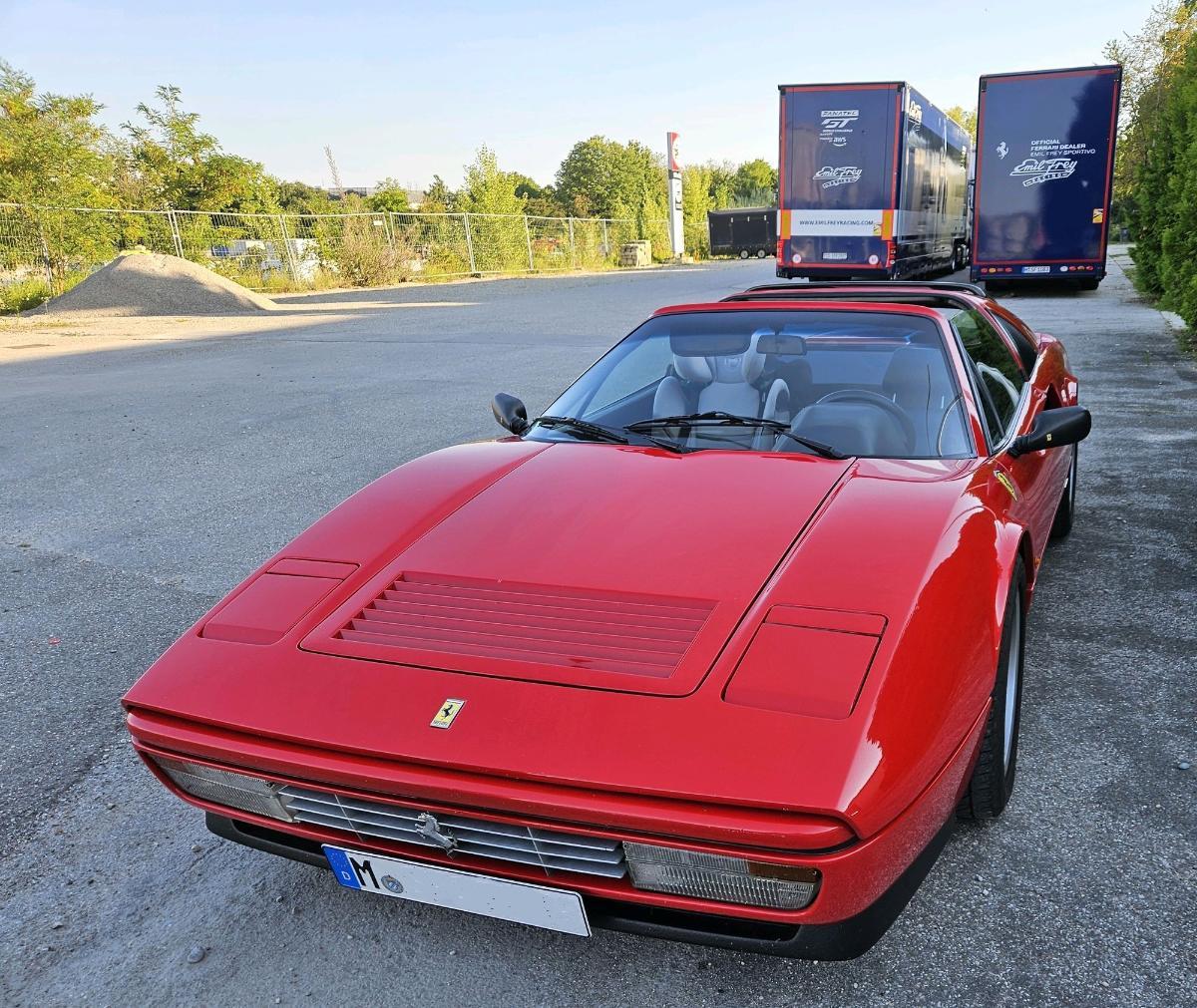Ferrari 328? Nein, das ist ein 208 Turbo. In Italien waren damals die Steuern horrend für Hubräume über 2 Liter. Deshalb griff man zwar zu 8 Zylindern, aber nur 2 Liter Hubraum plus Turbo.