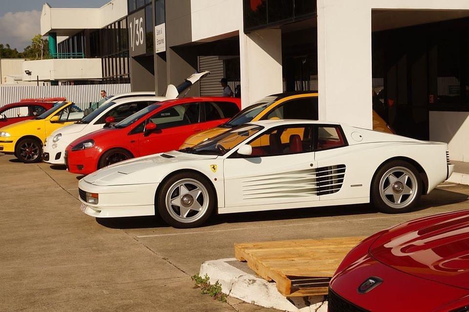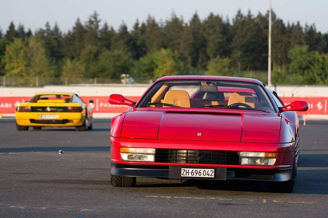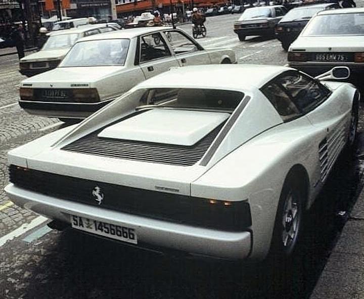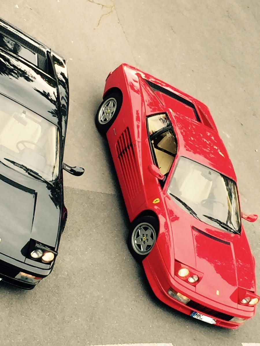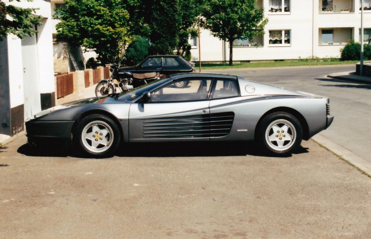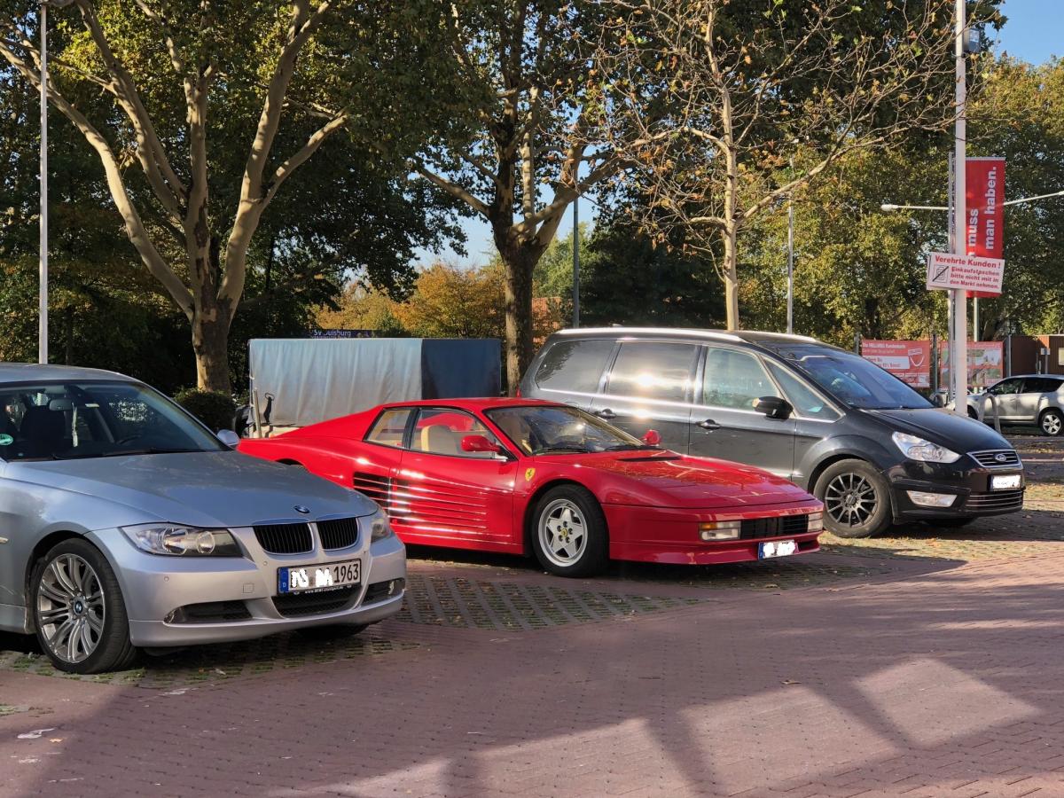 Neulich beim Baumarkt... Es ist zwar kein schönes Foto, aber es zeigt die unglaublich flachen Proportionen, und die extreme Andersartigkeit des Testarossa.