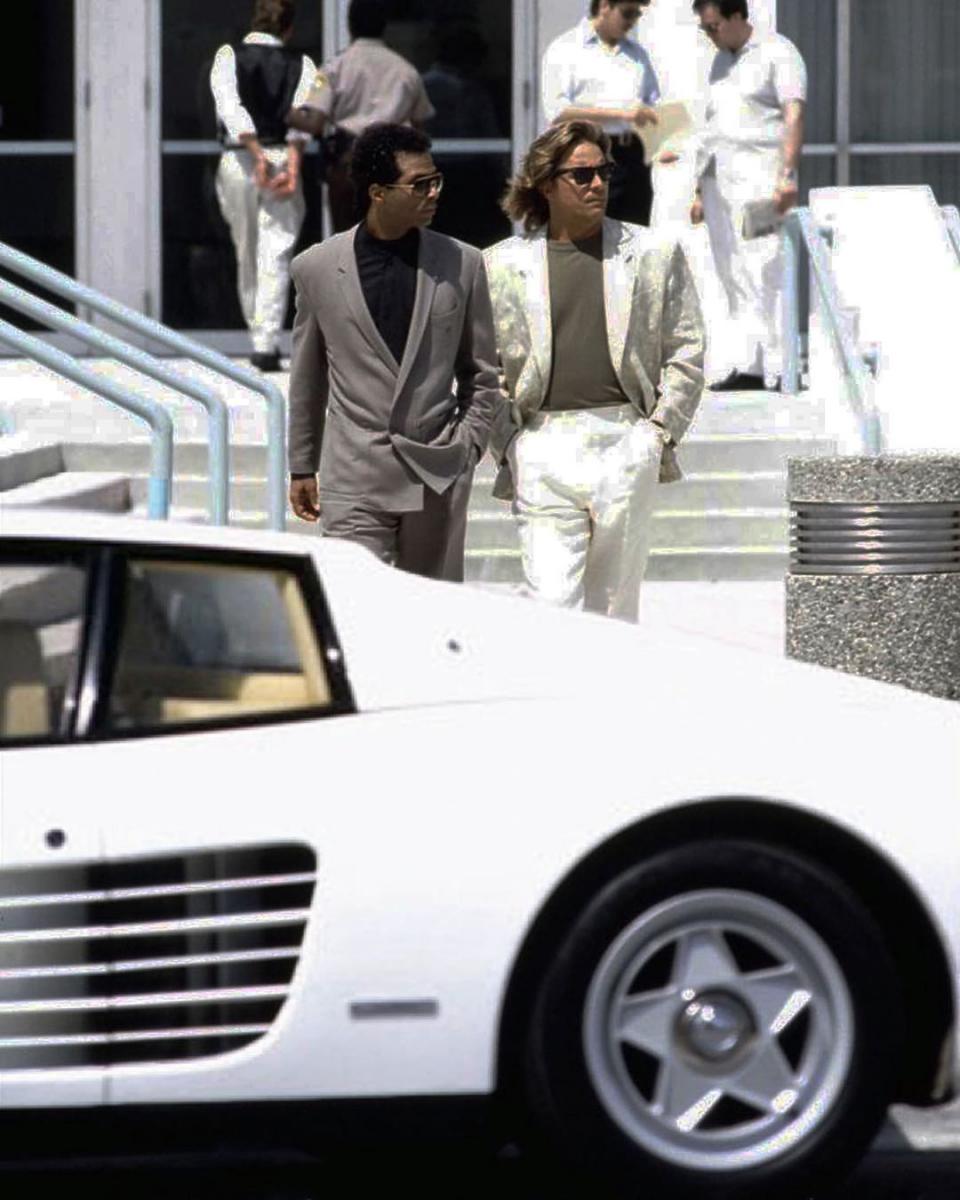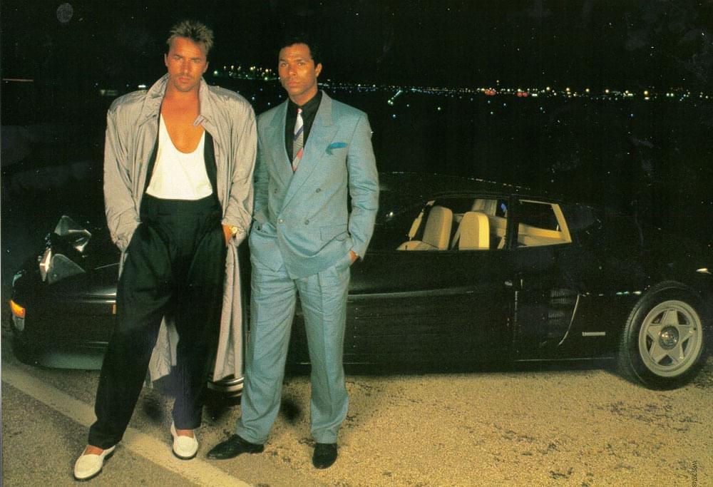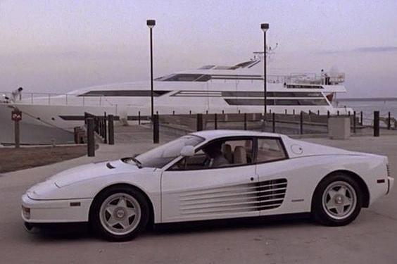 Ein ganz seltenes Bild vom Set zu den Dreharbeiten. Der MV-testarossa wurde schwarz ausgeliefert. Nachdem die ersten Nachtaufnahmen im Kasten waren, entschied man sich den Wagen weiß zu lackieren. Do kam er nachts besser zur Geltung.