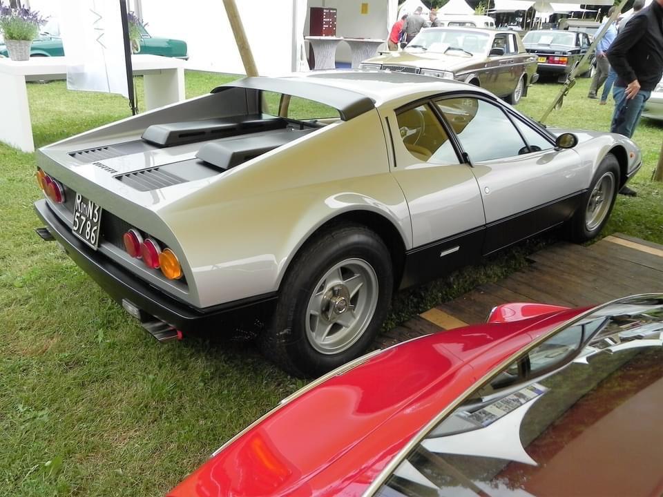 4 groessere Rueckleuchten an einem Lamellengitter, 4 Endrohre die mehr zur Fahrzeuginnenseite sind als beim 365, Heckklappe mit einem Luftgitter in der Mitte, zwei aussen und ein paar cm laenger als 365 (wegen Radstand), je ein Lueftungsschlitz an den Seiten unten vor dem Hinterrad (NACAR), original nur einen Vitaloni Spiegel (oval, baugleich "308") auf der Fahrerseite (zweiter wurde Nachgeruestet), Front unten mit Spoilerlippe, Nebelscheinwerfer vorn gab es Versionsbedingt hinter (nur die ersten bis ?1978?) UND vor dem Gitter (Laenderspez.) sowie die Blinker in Gelb (ohne Standlicht) und in Weiss (mit Standlicht).